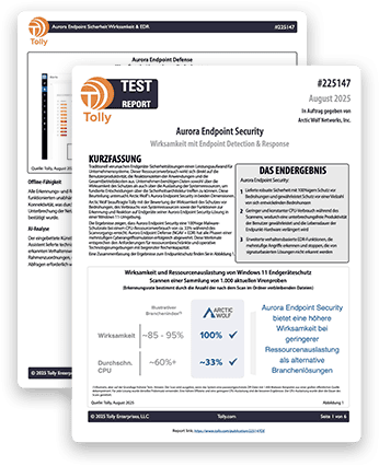 Laden Sie den unabhängigen Testbericht der Tolly Group herunter, um sowohl die Schutzwirksamkeit als auch die Systemressourcennutzung von Arctic Wolf Endpoint Security zu bewerten.