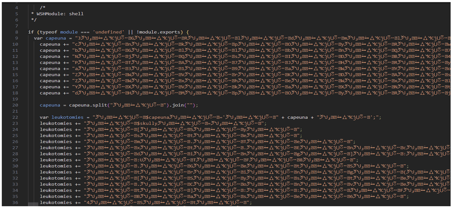 T1027.010 – Command Obfuscation: Heavy JavaScript obfuscation using variable randomization and string encoding. | ||