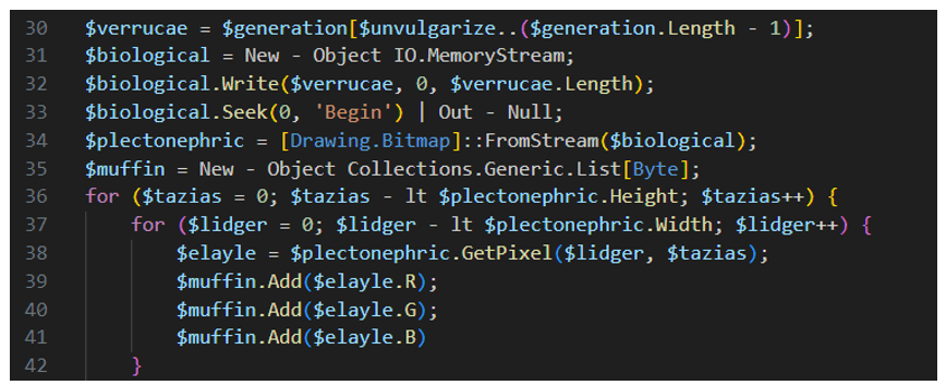 Figure 4: PowerShell code implementing LSB steganography extraction from image pixels.