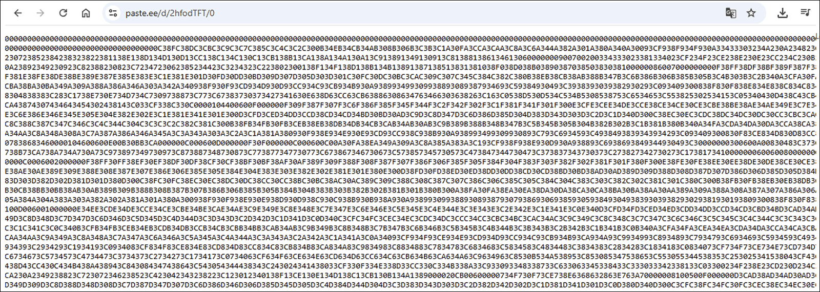 Alternative infection vectors observed include HTA (HTML Application) files that fetch subsequent stages from pastebin-style services. One observed HTA file connected to https[:]//pastefy[.]app/W8gaihTD/raw to retrieve an obfuscated script for the next execution stage.