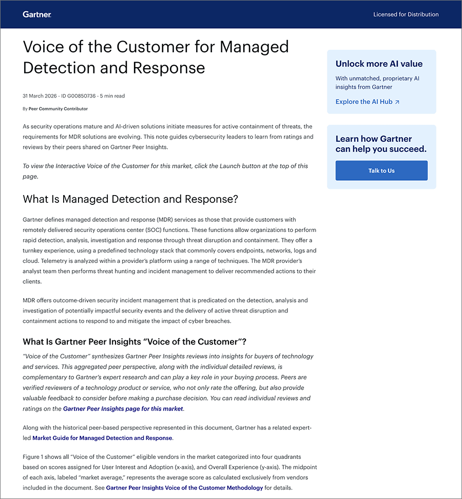 2026 Gartner® Voice of the Customer for Managed Detection and Response